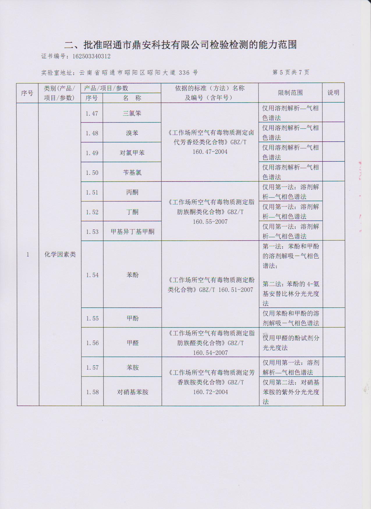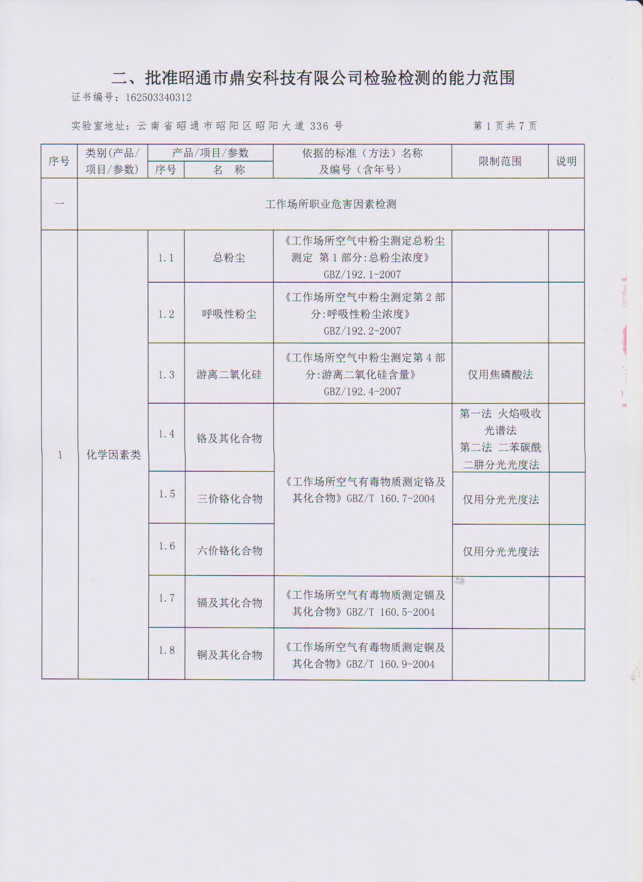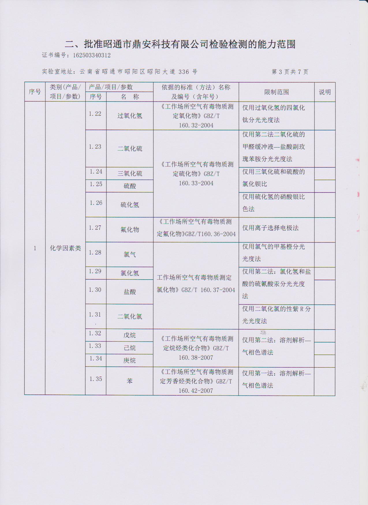 經(jīng)技術評審審核認定的檢測項目(第一類業(yè)務 合計110項)