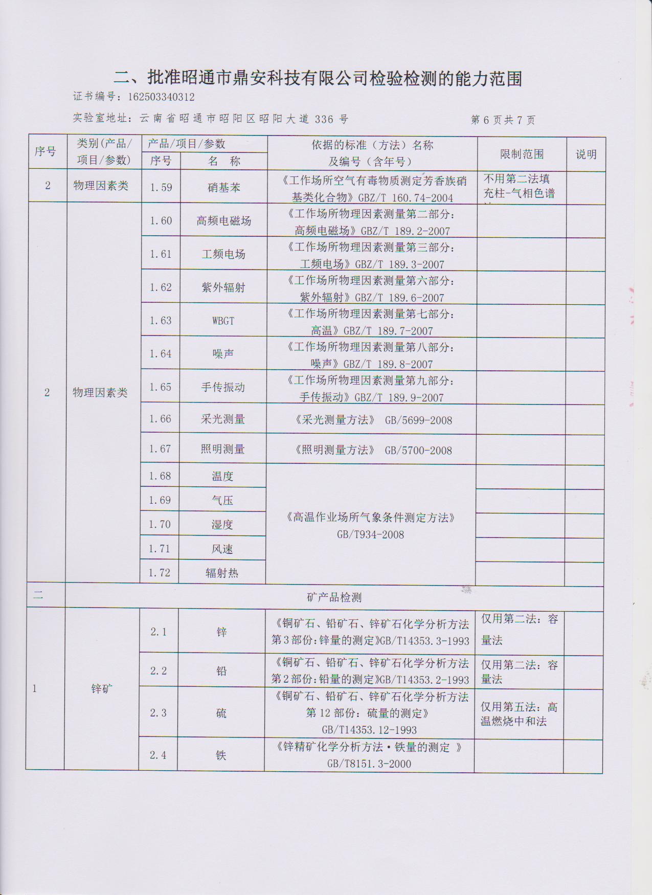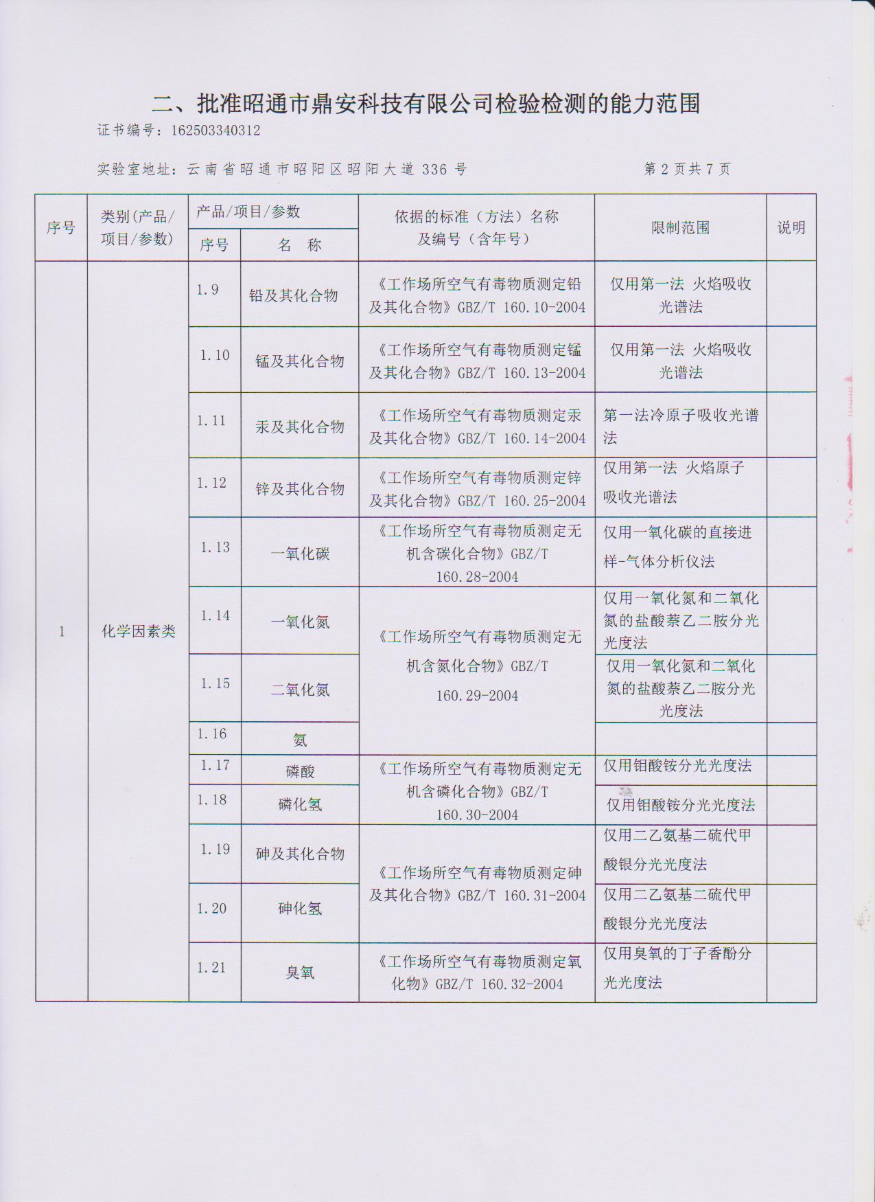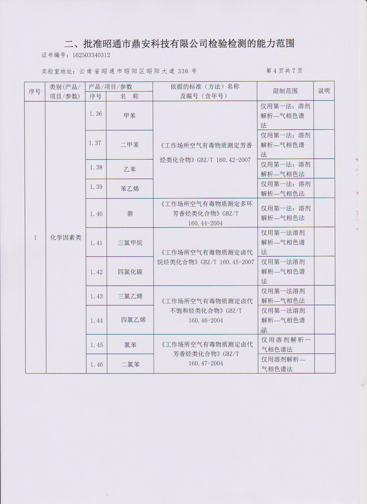 經(jīng)技術評審審核認定的檢測項目(第一類業(yè)務 合計110項)