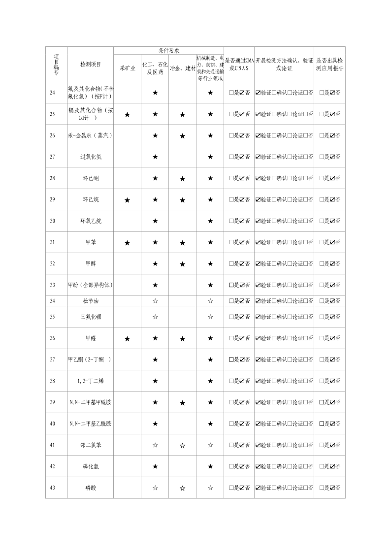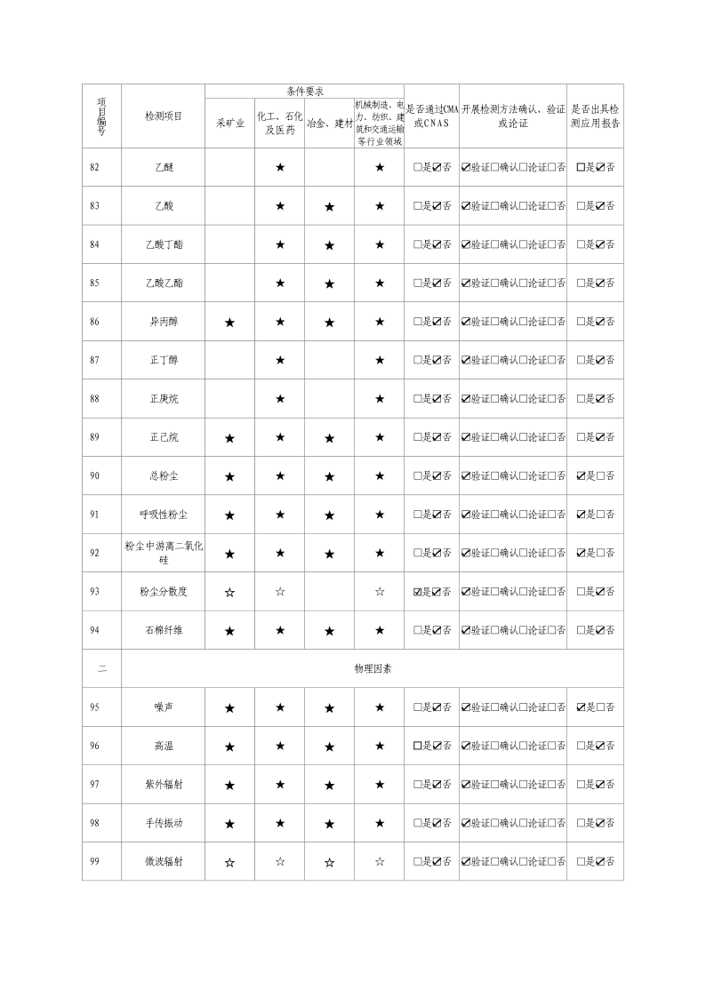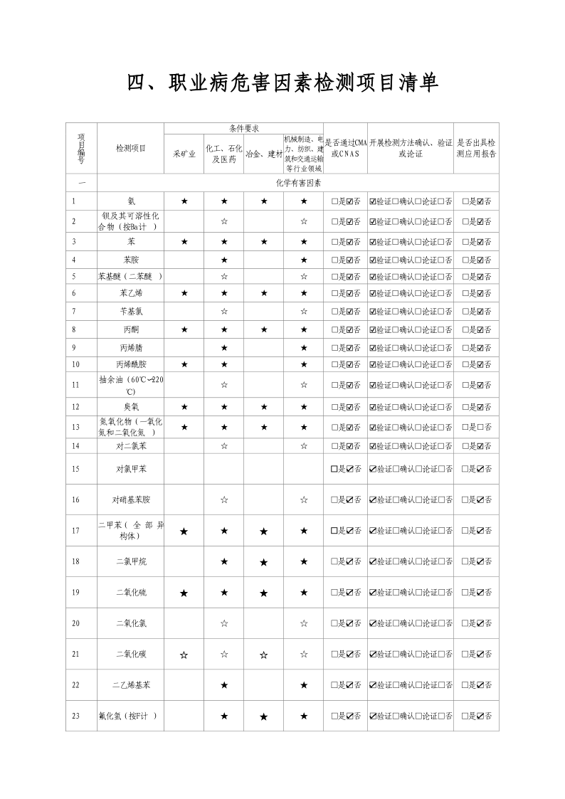 2024年職業(yè)衛(wèi)生技術(shù)服務(wù)機(jī)構(gòu)資質(zhì)證書(shū)及職業(yè)病危害因素檢測(cè)項(xiàng)目清單